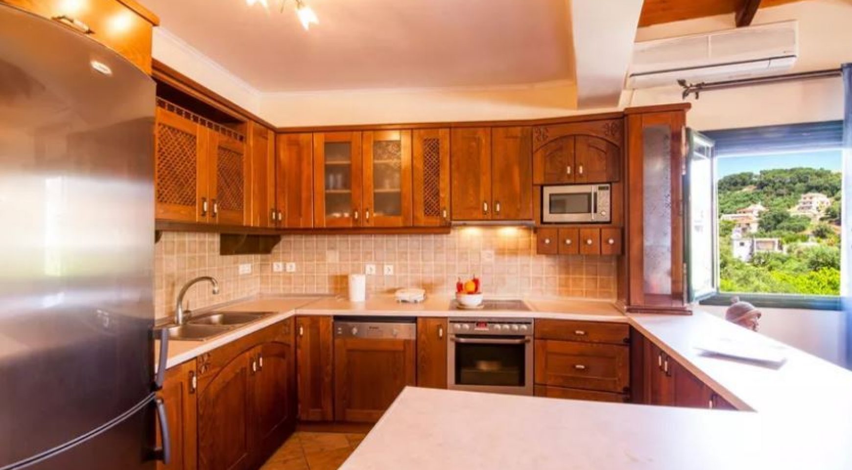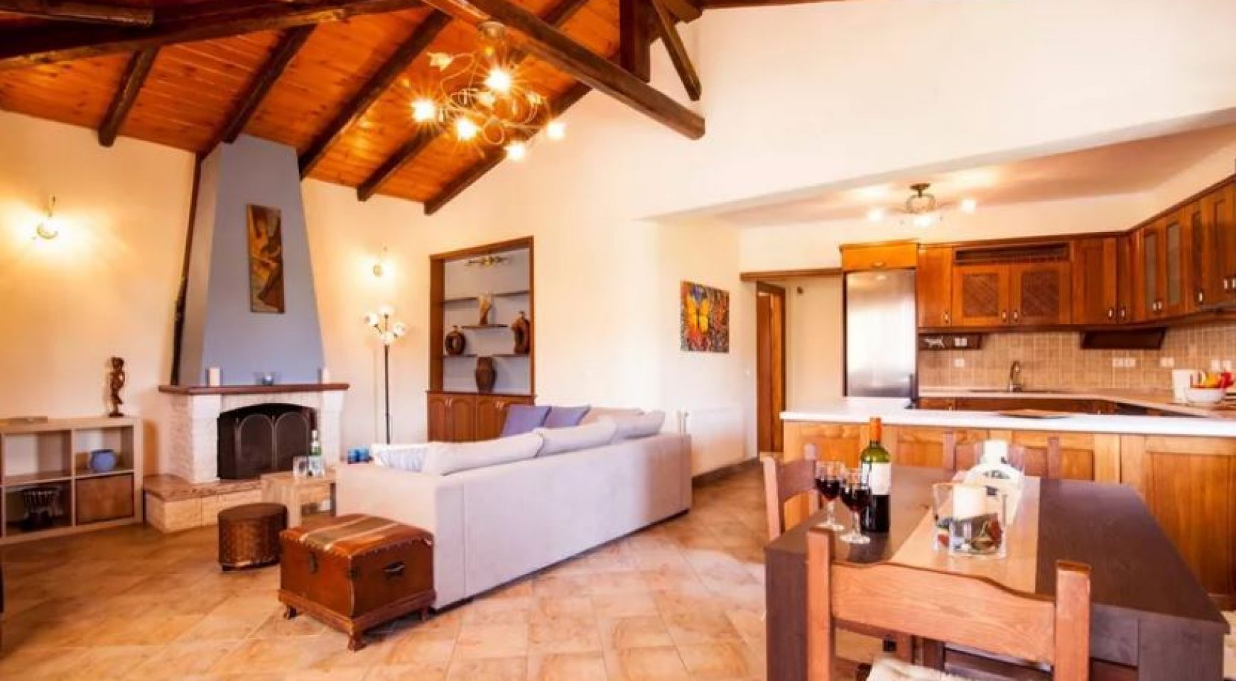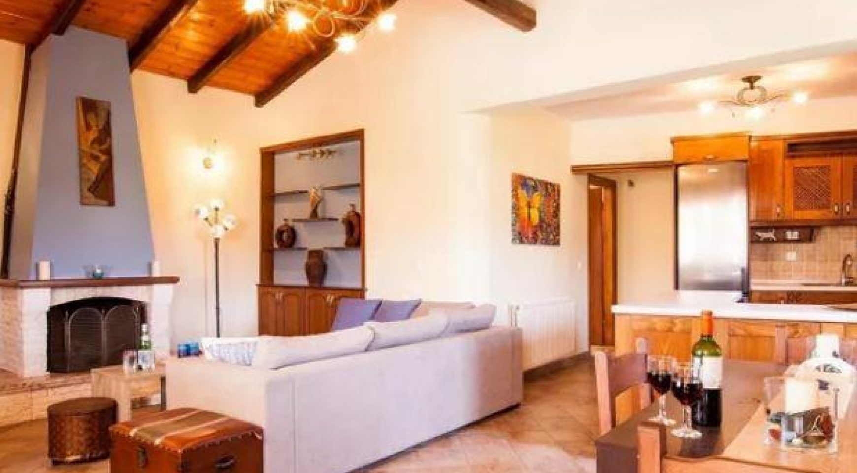 House 130 sq.m. on a land plot of 300 sq.m., only 700 m away from the beach. The house offers 3 bedrooms, a living room with a fireplace, an open plan kitchen, balconies with garden view. Price 190.000 euro